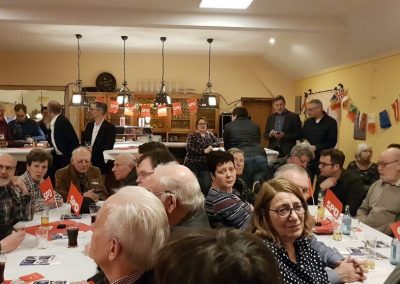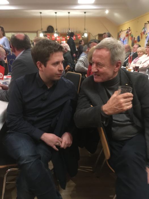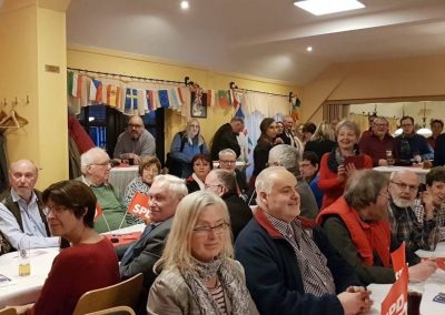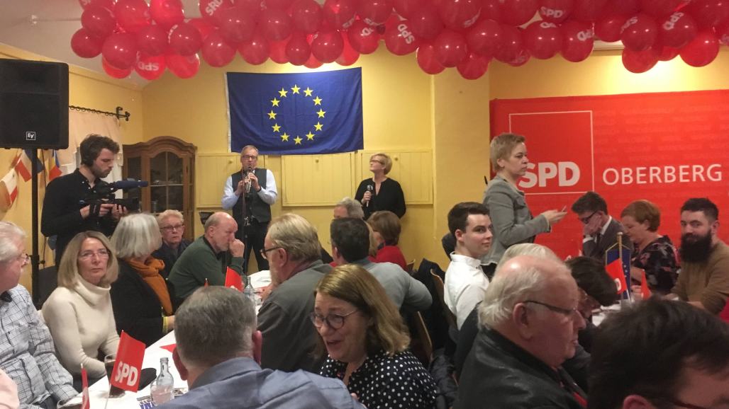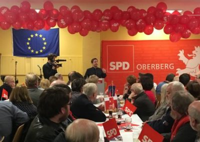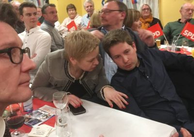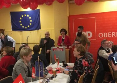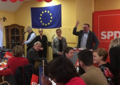 Am Ende des Abends zeigte sich Thorsten Konzelmann hochzufrieden: “Dass so viele Gäste der Einladung der SPD Oberberg gefolgt sind, zeigt uns, dass Genossen wie Kevin Kühnert mit ihren politischen Forderungen den Nerv der Zeit treffen. Diese stimmungsvolle Veranstaltung war für uns die perfekte Einstimmung auf den anstehenden Europa-Wahlkampf.”