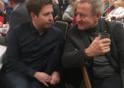 “Auch mit seinen launigen Seitenhieben auf den politischen Gegner hat Kevin Kühnert den Nerv des Publikums getroffen”, freute sich Thorsten Konzelmann, Vorsitzender der oberbergischen SPD, über den gelungenen Auftritt. Zuvor hatten bereits die Kandidaten der SPD zur Europawahl, Claudia Walther und Ingo Wagner, Rede und Antwort gestanden und die Gäste auf die Wahl im Mai eingestimmt. Auch Sven Wolf, Mitglied des Landtags Nordrhein-Westfalen, unterhielt die Anwesenden mit einem Einblick in das politische Geschehen in Düsseldorf. Nikolaus Kleine sorgte mit seinem kabarettistischen Vortrag für Heiterkeit mit tiefem Sinn und musikalisch überzeugen 2forYou auf der ganzen Linie.